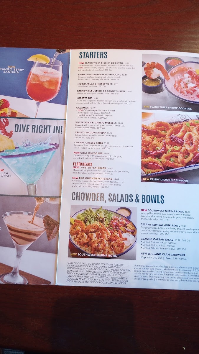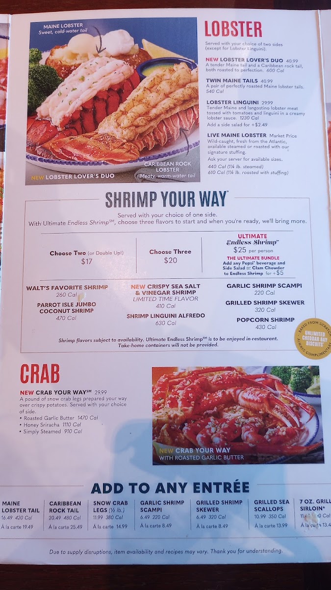 Cheddar Bay Biscuits Chowder Calories Lobster Bisque House Salad Caesar Salad Coleslaw